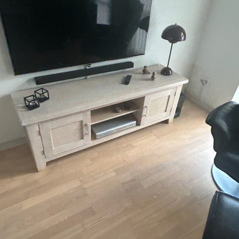 TV-bord, hvidt med træplade, kun afhentning i 6670 Holsted