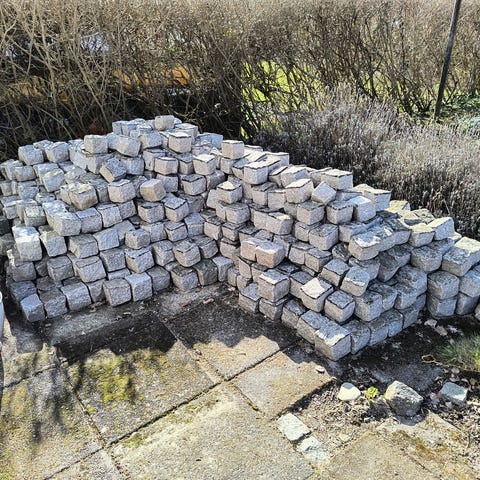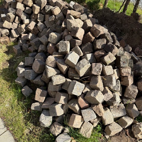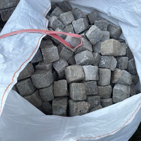 45 stk i sort granit og 7 stk i hvid granit. Ca. 7-11cm