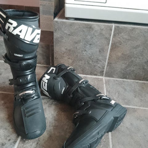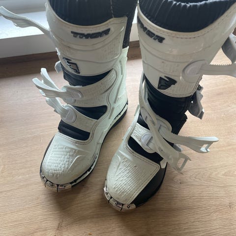 MX Boots motocrossstøvler i størrelse 47. Støvlerne er i hvid og brun med sorte detaljer og justerbare spænder på fronten. Modellen er designet til brug ved motocross og lignende kørsel og giver støtte omkring ankel og skinneben. Leveres i original æske med angivelse af størrelse og modeloplysninger på kassen. Det svare til en 46 den er lille i nr .