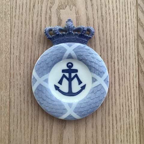 Oval platte fra 1897 udsendt i anledning af Dronning Louises 80 års dag. Tegnet af Arnold Krog og efter det oplyste fremstillet af den Kongelige Porcelænsfabrik i kun 1200 eksemplarer. Super flot stand! Kongehuset.
