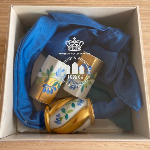 Blå Blomst metal dåsesæt bestående af flere runde dåser med låg, en høj rektangulær dåse samt en hjerteformet dåse.