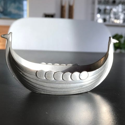 Smuk vintage skål formet som vikinge skib fra Just Andersen.