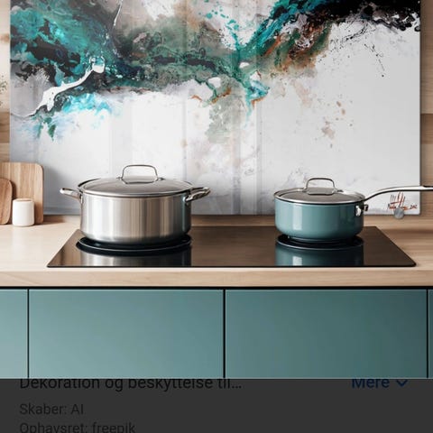 Super flot stænkplade der gør køkkenet helt unikt. Meget nem at gøre ren.
