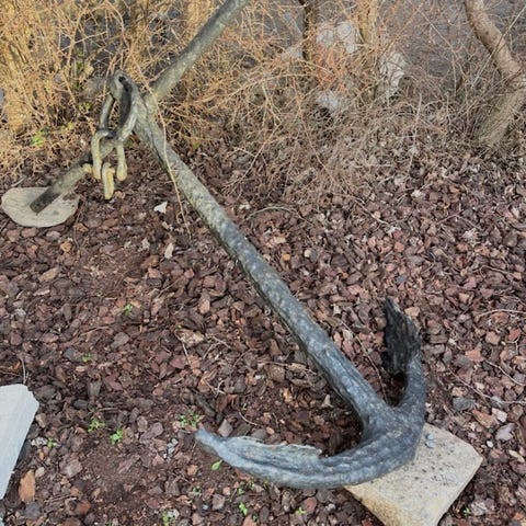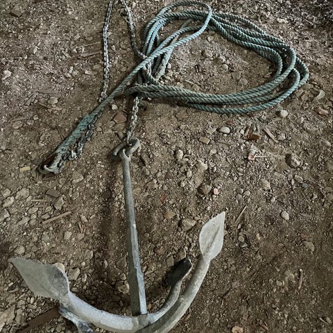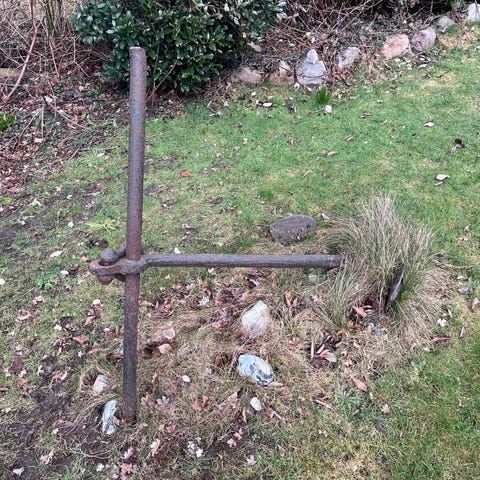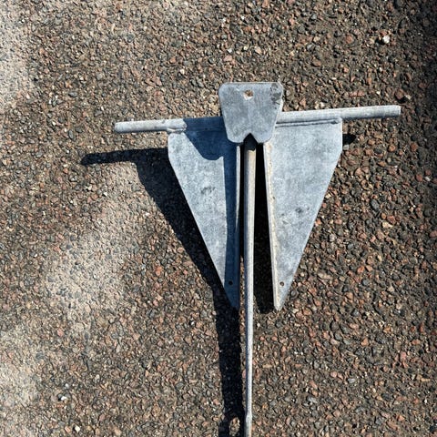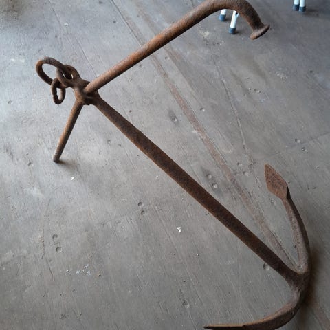 Stokanker med tilhørende kæde. Ankeret fremstår rustikt og massivt og kan anvendes dekorativt i have, ved indkørsel eller som maritim udsmykning. Velegnet som pynt eller som samlerobjekt for folk med interesse indenfor maritime artefakter. Størrelsen er: længde 80 cm / bredde 70 cm. Afhentes.