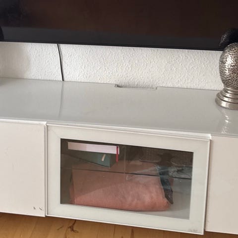 TV skænk, i hvid højglans. Med glasplade og 3 store rum. Fejler intet, som ny. Afhentes i Taastrup.
