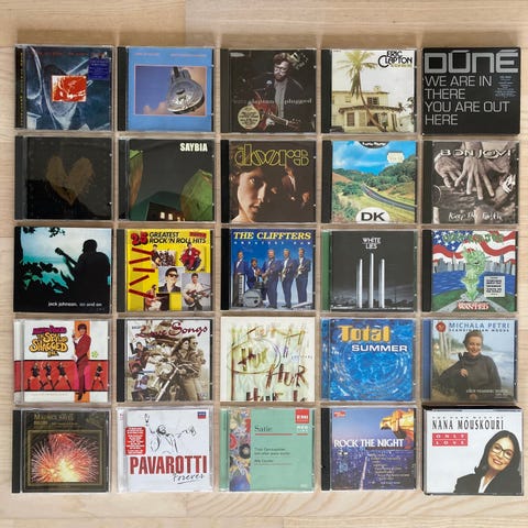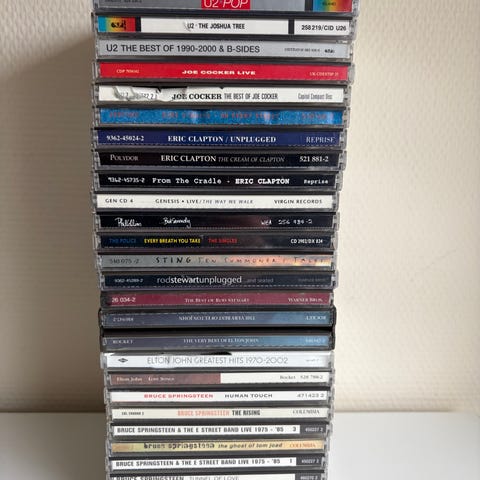 Samling af CD albummer fra forskellige kunstnere. Blandt andet ses Eric Clapton "The Cream of Clapton" og R.E.M. "Automatic for the People" samt yderligere albummer fra andre kunstnere. Fysiske CD’er i standard jewel cases med originalt cover og bagside med trackliste. Velegnet til køber, der ønsker at udvide sin samling af rock- og popudgivelser på CD.