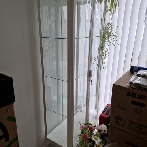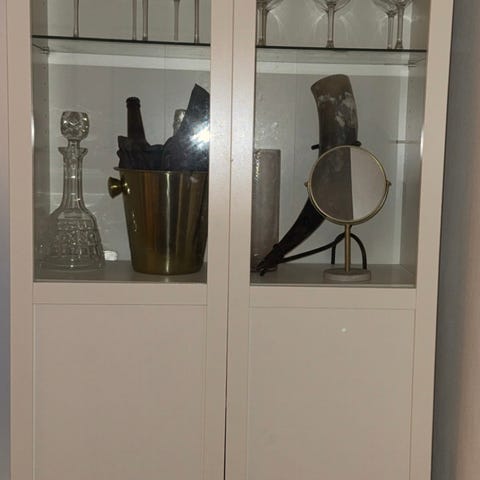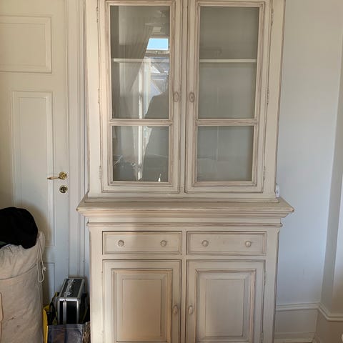 Smukt hvidt vitrineskab. Har lidt patina- look.
