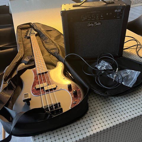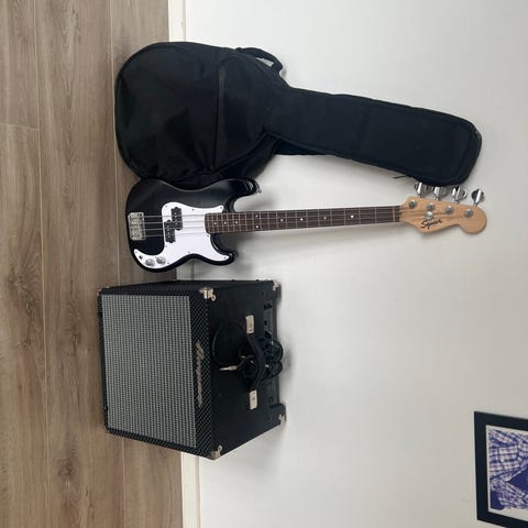 Tokai Les Paul elektrisk guitar i guld finish. Modellen har klassisk single cutaway-krop med to humbucker-pickupper, trevejs pickupvælger og separate volum- og tonekontroller. Guitaren har palisandergribebræt med indlagte trapez-inlays og indstillelig stoptail/bridge-kombination. Leveres med matchende guitarforstærker, instrumentkabel og rem som vist på billederne + guitarbag