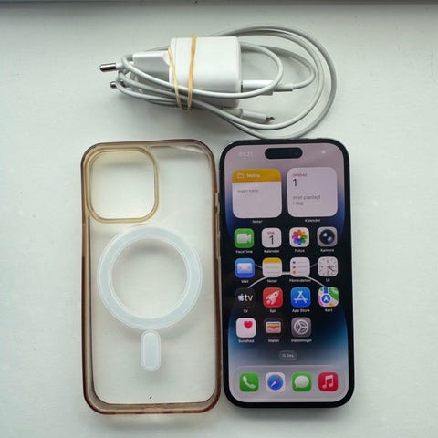 Apple iPhone 14 Pro smartphone med 256 GB intern hukommelse. Modellen har stor skærm med frontkamera i skærmens øverste midte og understøtter avancerede kamerafunktioner, apps og lagring af billeder, video og dokumenter. Egnet til almindelig brug, streaming, spil og arbejde med flere apps på samme tid.