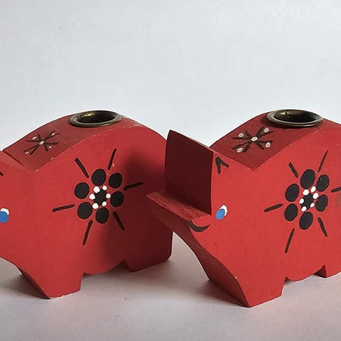 vintage Lyholmer lysestage af håndmalet træ.