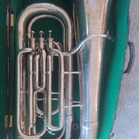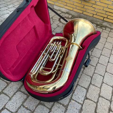 Her er en King model 1241 BBb recording tuba med originale kasser. Den er lavet mellem 1960 og 1965 og er i perfekt spillende stand. Ventilerne er ikke slidte og alle bøjler kører. Perfekt til sommerens trad jazz festivaler.