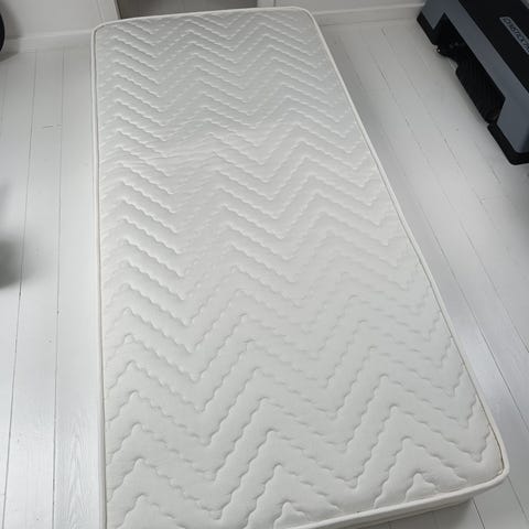 Madrassen fremstår i rigtig god stand og har været brugt med topmadras ovenpå, så selve madrassen er pæn og velholdt.