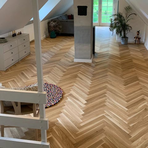 Urban Hald Sildebensparket / Stavparket Eg - Natur behandlet med matlak i størrelsen 11x70x490 mm - 4 uåbnede kasser af x 2,058 m2 samt en åbnet kasse hvor der kun er taget et par stykker - minimum 9m2