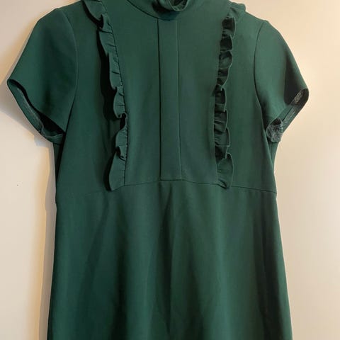 JDY hverdagskjole til kvinder i størrelse 38. Kjolen er grøn og fremstillet i bomuld. Modellen har korte ærmer og skørt i flere lag, som giver et let og afslappet udtryk.