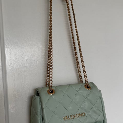 Valentino rygsæk i kunstlæder til kvinde. Tasken er i en lys grå farve og med guldfarvet Valentino-logo. Tasken er brugt men fejler ingenting og har ingen skader.