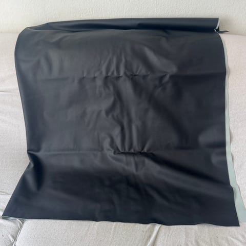 Sort stof, læderlook (møbelstof).