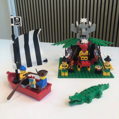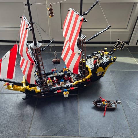 Super fint pirat sæt som fremstår i originale gamle klodser i fin stand, alle clips er hele, begge plader hel i alle hjørner se foto .