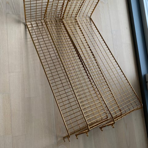 Fire fine tråd boghylder i messing. Fejler ingenting.