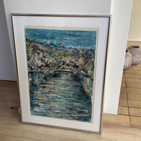 Billede (maleri) af ukendt "kunstner" flotte farver/abstrakt sælges for kr. 750,-. Billedet måler 90 x 90 cm. Billedet kan ses i Hillerød og Tisvildeleje efter aftale. Hængt i ikke ryger hjem