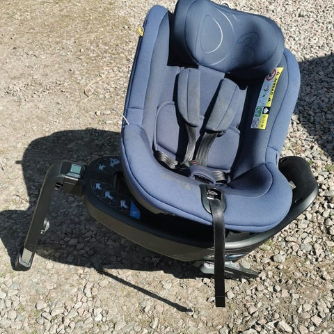 Autostolen på billedet er en Nado O3 Reverse Plus i farven navy. Denne model er en bagudvendt autostol med en praktisk 90-graders rotationsfunktion, som gør det nemmere at få barnet ind og ud af bilen.