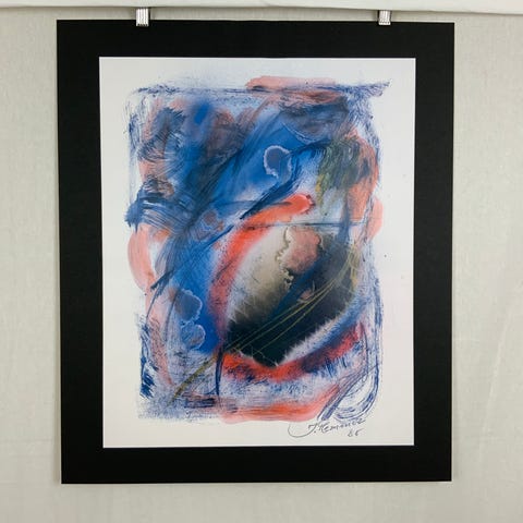 Mål: værk: 15 cm x 21 cm og karton: 55 cm x 64 cm (Værket er monteret på karton)