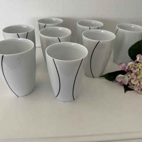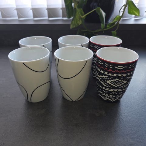 4 stk. Pernille Vea fra Menu termokrus. Hvide med sort deco. 210 ml.