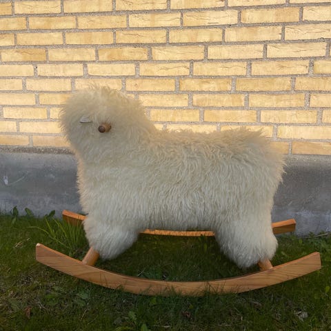 Sød lænestol til de mindste i flettet bambus. Stolen er fra Ilva og passer til 2-4 år. Lækkert korthåret lammeskind til baby ca. 80x50cm.