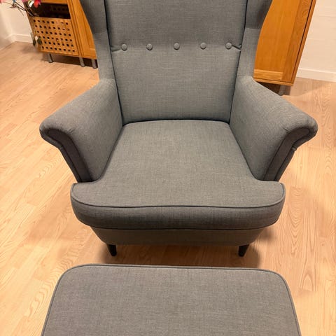 - ikea lænestol Strandmon inkl. Puf i god stand