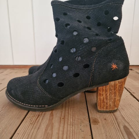Lækker sko i retrostil i sartgrøn skind med rem og flot hæl. Brugt få gange.