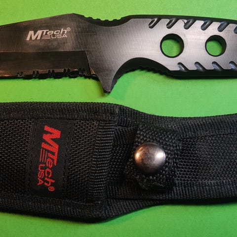 Gerber Clip Lock Rivermaster kniv med original skede og æske. Kniven har fast blad med delvist savtakket ryg og integreret bælteclip i metalhåndtaget. Medfølgende sort plastskede er formstøbt til kniven. Leveres i den originale blå "Legendary Blades" æske med modelbetegnelse 05302 angivet på emballagen. Velegnet som brugskniv eller samlerobjekt. Kom med et bud