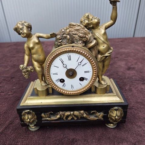 Gipspendulrum af V. Tognelli, Frankrig, dateret ca. 1940–1950, mekanisk urværk med flerdages gangreserve, ingen slager, ikke i funktionsduelig stand, i god brugt stand med små aldringstegn; dimensioner 34 × 27 × 10 cm, vægt 2,94 kg. Klik på den blå "gå til varen" knap, for at købe eller byde på denne vare. Den samlede pris vil blive vist inden du afgiver dit bud.