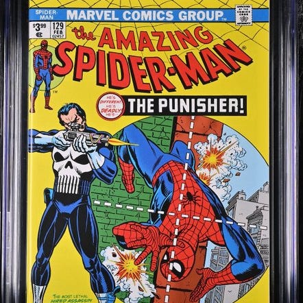 EGC-bedømt tegneserie kaldet 'EGC 9.8 - The Bride of Venom', første udgave fra Marvel Comics, nummer #375 med foil-cover, hæftet binding, udgivet i 1993, af kunstnerne David Michelinie, Mark Bagley og Randy Emberlin, i fremragende stand. Klik på den blå "gå til varen" knap, for at købe eller byde på denne vare. Den samlede pris vil blive vist inden du afgiver dit bud.