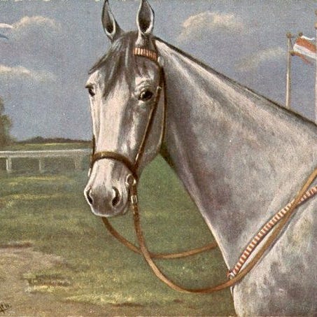 Der kan være enkelte brugsspor af alder, men generelt et smukt parti. Tema: pyntede katte i menneskelige scener.