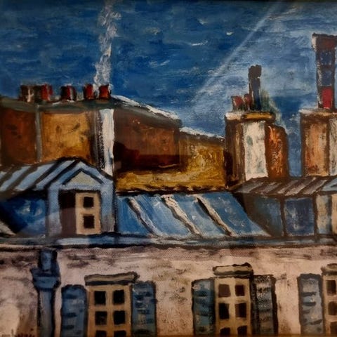 Et maleri af Bruno Paoli (beskadiget øverst), solgt med klassisk træramme dekoreret.