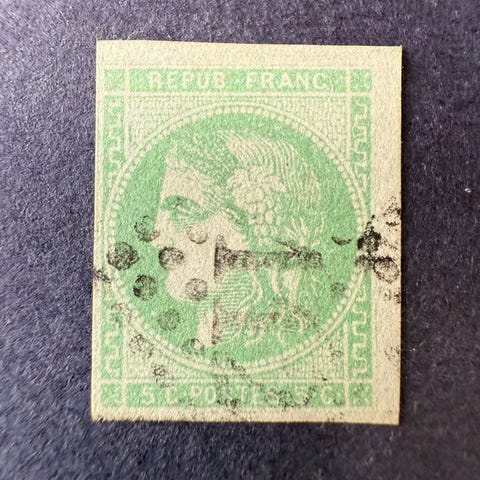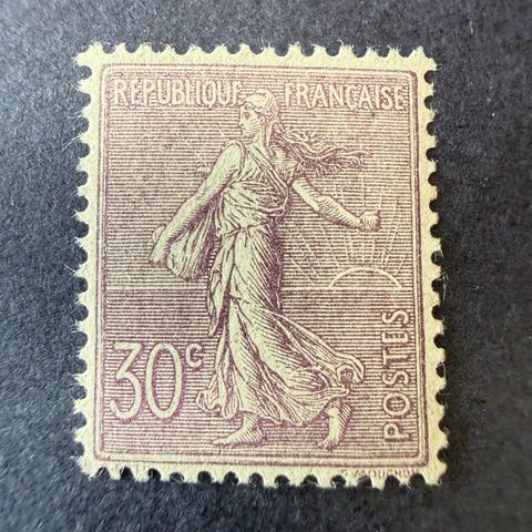 Fra Frankrig, Yvert 133a 'Semeuse lignée 30c violet foncé' i ny uden gum, underskrevet Calves. Klik på den blå "gå til varen" knap, for at købe eller byde på denne vare. Den samlede pris vil blive vist inden du afgiver dit bud.