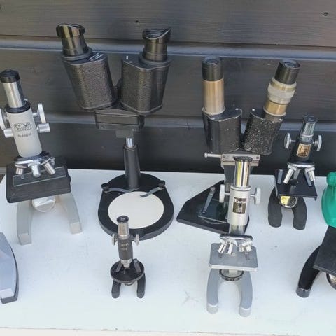 objekt ægte, vintage videnskabeligt, museums-samling, industriel design, ældre mikroskop, høj kvalitet, meget eftertragtet. ideel dekoration til loftet, cabinet de curiosité / steampunk .(theodolite, sekstant, dampmotor, dampmaskine, kompas, kikkert, lup, kikkert)