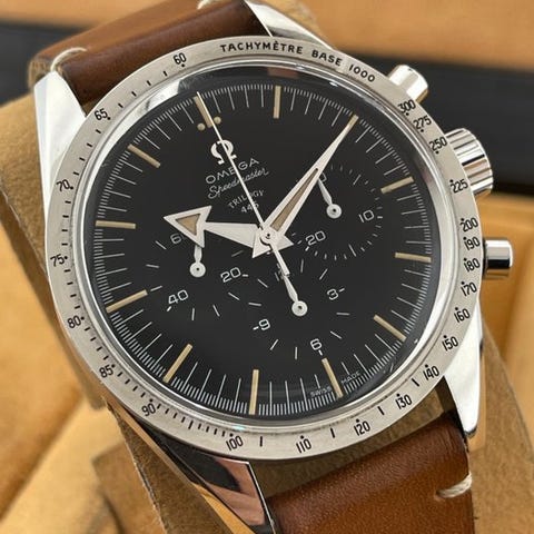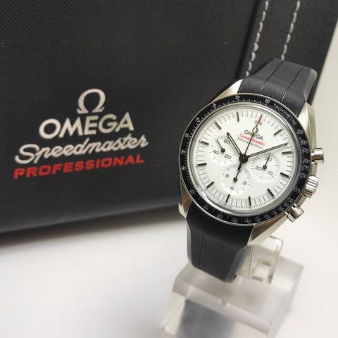 Omega Speedmaster automatisk chronograf, reference 331.12.42.51.02.002, fra 2010–2020, med stellet stål kasse, hvid skive og brun læderrem, kasse diameter 42 mm, til mænd. Klik på den blå "gå til varen" knap, for at købe eller byde på denne vare. Den samlede pris vil blive vist inden du afgiver dit bud.