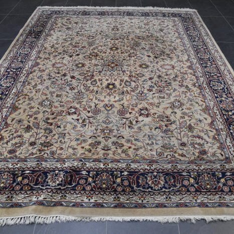 Håndvævet indisk tæppe Sarugh, størrelse ca. 161 × 88 cm, uld på bomuld, flerfarvet, i meget god stand. Klik på den blå "gå til varen" knap, for at købe eller byde på denne vare. Den samlede pris vil blive vist inden du afgiver dit bud.