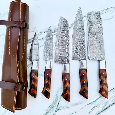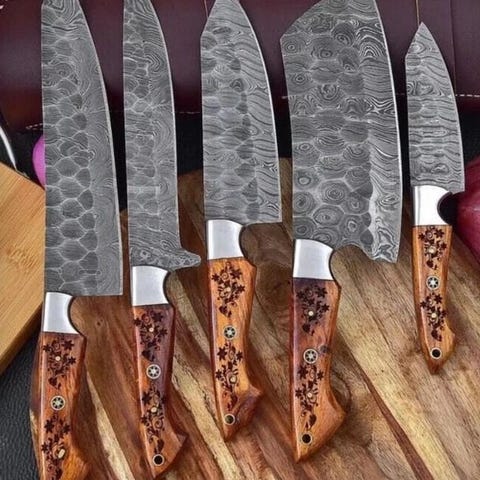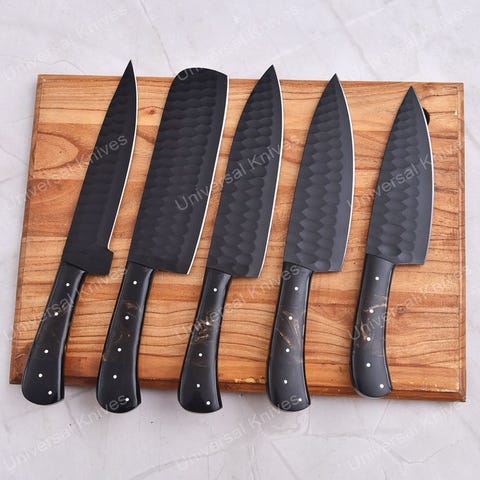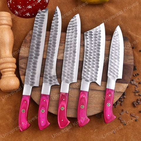 Resin-skallen er fastgjort. Komfortabelt at holde i hånden. for samleren eller mesterkokken er dette knivsæt stilfuldt og bygget til at vare. Hak, hakke, skær og udskær dig til at blive en mesterkok med dette alsidige knivsæt