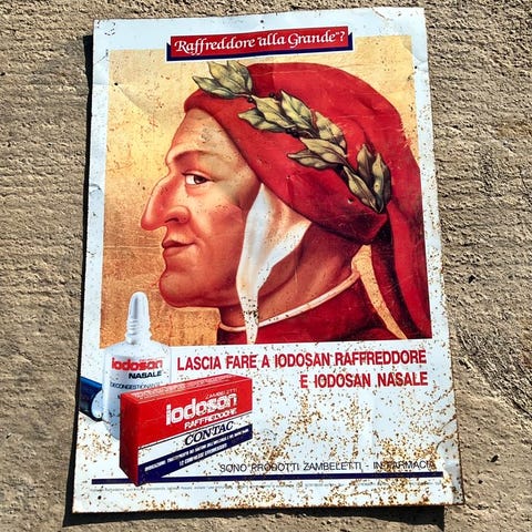 Sjældent reklameskilt: MIRA - LANZA, fremstillet i metalplade [aluminium eller stål] emaljeret med reliefskrifter og signeret med det angivne navn MIRA LANZA.