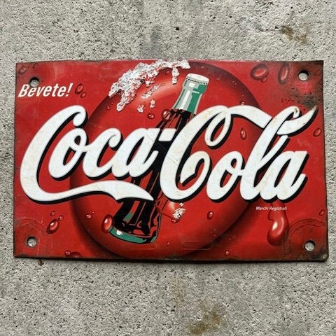 Metallisk reklameskilt AVA med Calimero, designet af Mira Lanza, originalt fra Italien, fremstillet af emaljeret aluminium og/eller litograferet metal, gul, 34 cm høj, 24 cm bred og 0,3 cm dyb, i god brugt stand med mindre aldersmærker, underskrevet af Mira Lanza. Klik på den blå "gå til varen" knap, for at købe eller byde på denne vare. Den samlede pris vil blive vist inden du afgiver dit bud.
