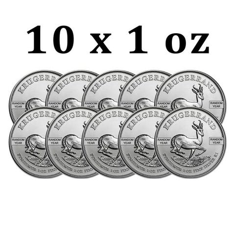 Ti Krugerrand 2026 sølvmønter, hver på 1 oz, finhed 999, præget af Rand Refinery i Sydafrika, samlet vægt 10 oz. Klik på den blå "gå til varen" knap, for at købe eller byde på denne vare. Den samlede pris vil blive vist inden du afgiver dit bud.