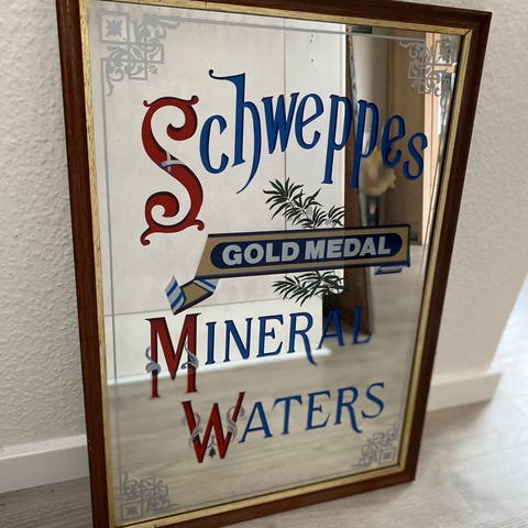 Smukt Schweppes-vægur-skilt, der stammer fra 70'erne og 80'erne.