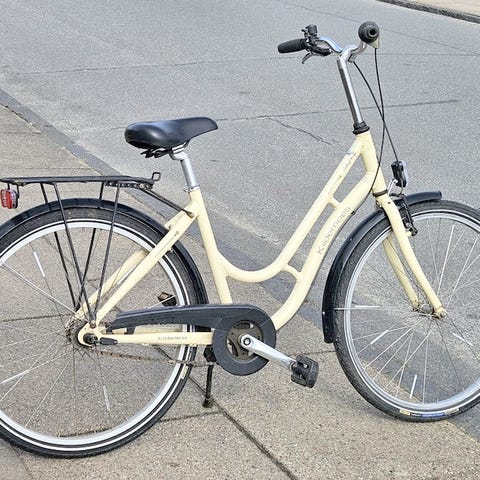 Hvid pigecykel med lyserøde sommerfugle til alder 10 - 14 år (26' - der er moderat rustbelægning på kurven)