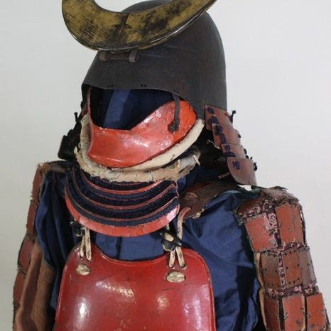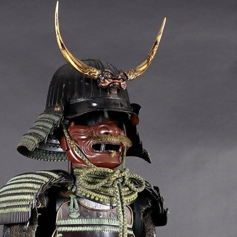 Rustning - Japan - Tetsu Kuro Urushinuri Zunari Kabuto med Maetate fra Samura...