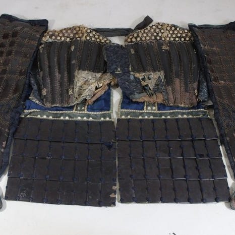 Læder kabuto hjelm fra Edo-perioden i Japan, over 200 år gammel, med Maetate, i rimelig stand; målene 33 × 30 × 30 cm, vægt 1,4 kg; uden stand. Klik på den blå "gå til varen" knap, for at købe eller byde på denne vare. Den samlede pris vil blive vist inden du afgiver dit bud.