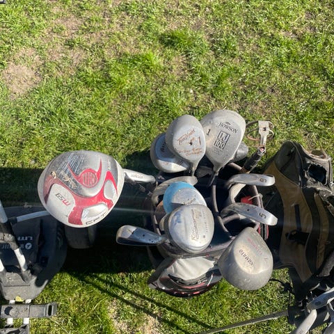 Sæt golfkøller med tilhørende bag. Sættet indeholder flere jernkøller samt forskellige hybridkøller, som ses på billederne. Køllerne leveres samlet i golfbag, der har flere rum til opdeling af køllerne. Velegnet som komplet basissæt til golfspil på bane eller træning på driving range.