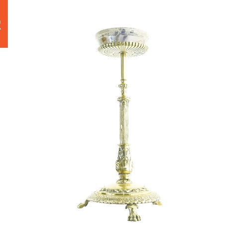 Stagen har et eksklusivt og dekorativt udtryk med snoet skaft og rigt ornamenteret fod – perfekt som blikfang i indretningen eller til samleren.