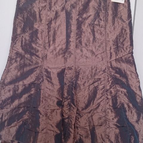Rustbrun nederdel fra Therese i str. l. Materialet er viskose, nylon og elastan. Nederdelen er brugt og vasket en enkelt gang.