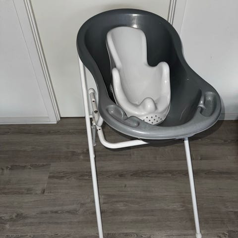 Baby badekar i hvid plast. Badekarret har ergonomisk form med let hævet støtte i den ene ende og indbygget prop i bunden til nem tømning. Velegnet til bad af spædbørn og småbørn og kan placeres direkte på gulv eller i større badekar, afhængigt af plads og behov.